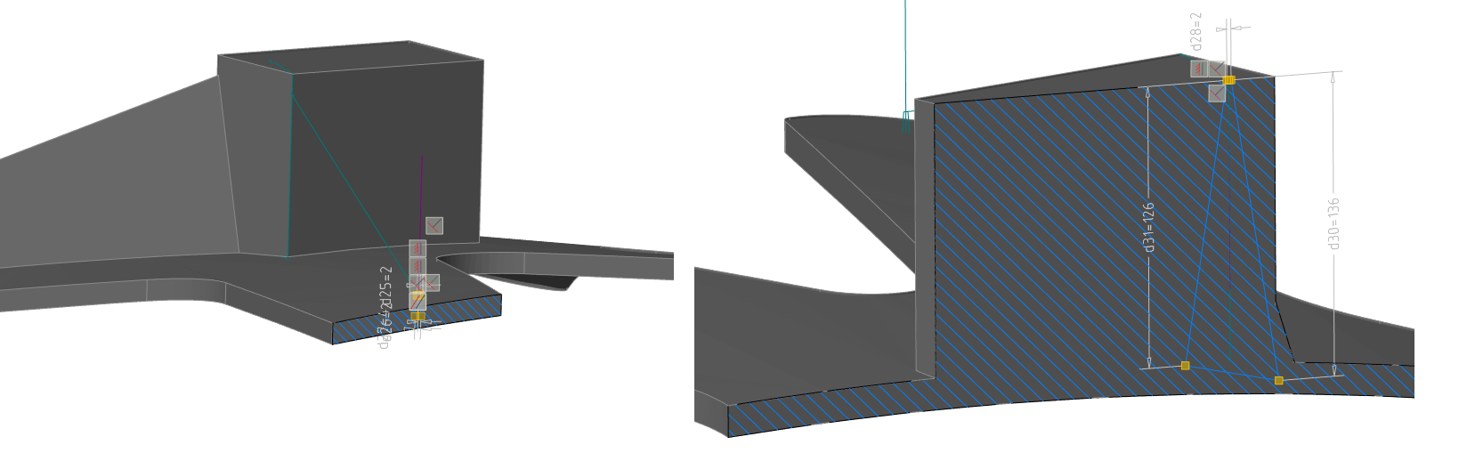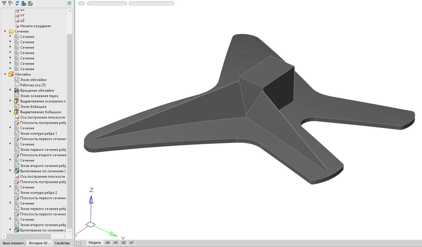 На плоскости YZ строим псевдоразрез и создаем 2D-эскиз.