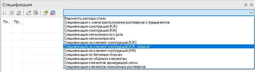 Из выпадающего списка выберем Спецификация на элемент конструкции (КЖ, сборка) (рис. 2).