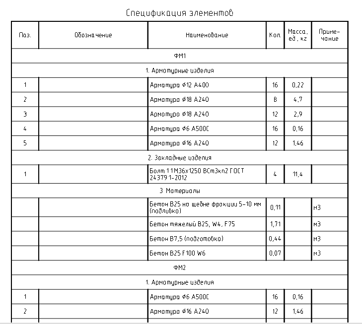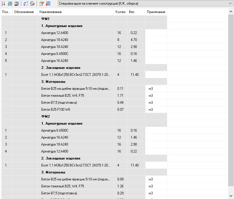 Рис. 3. Спецификация на элемент конструкции (КЖ, сборка)