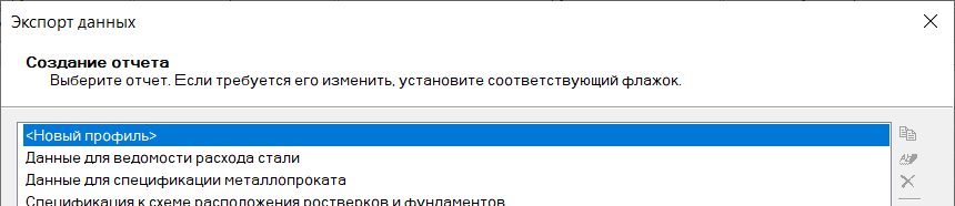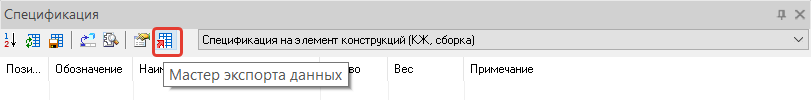 Откроем Мастер экспорта данных на панели Спецификация (рис. 5), в окне экспорта выберем <Новый профиль> и нажмем Далее (рис. 6). Введем имя спецификации, например, Моя спецификация сборки.