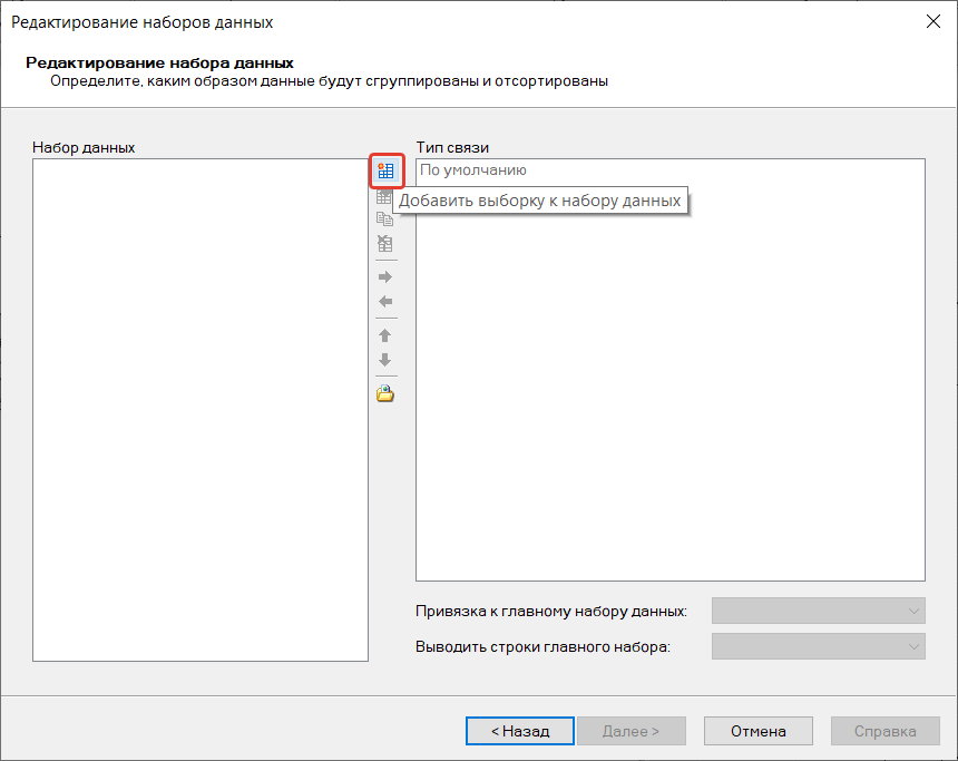 Вернемся в окно Редактирование наборов данных, где в форме Набор данных появилась наша выборка. Нажмем Далее.