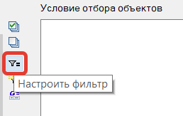 - поле Условие отбора объектов позволяет создать условие отбора объектов по информационным параметрам (подробнее об этом ниже);