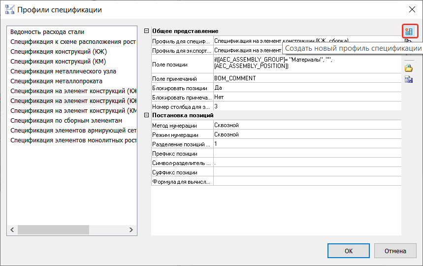 К настоящему моменту мы задали условия для выборки объектов из модели. Следующим шагом создадим профиль нашей будущей спецификации для отображения ее на панели Спецификатора.
