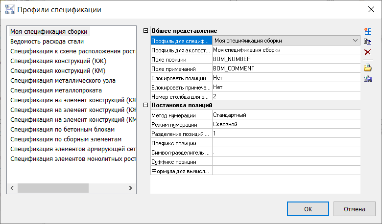 - в поле Профиль для экспорта – Моя спецификация сборки;