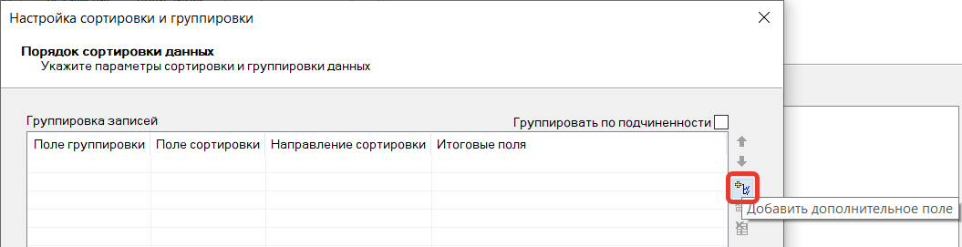 Добавим параметры в окно группировки записей. Для этого нажмем кнопку Добавить дополнительное поле (рис. 33)