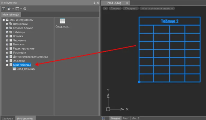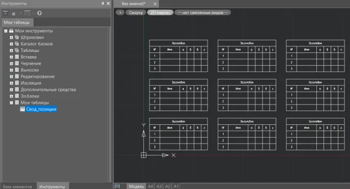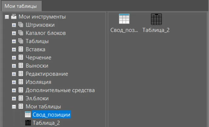 Так же, как и в случае с блоками, панель Инструменты позволяет хранить часто используемые таблицы nanoCAD, обеспечивая мгновенный доступ к ним из различных проектов. Однако, в отличие от блоков, таблицы сначала потребуется добавить в базу.