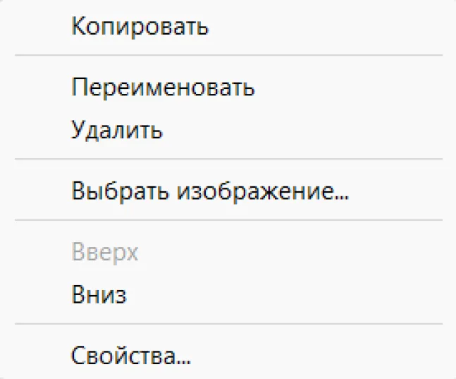 Инструменты имеют контекстное меню, показанное на рис. 13.