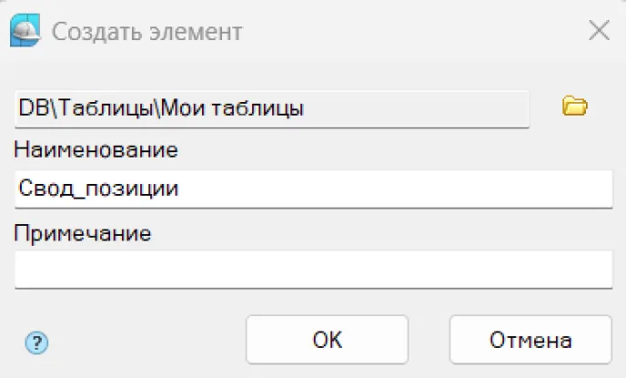 - В диалоговом окне Создать элемент зададим имя нашего объекта и нажмем кнопку OK (рис. 39).
