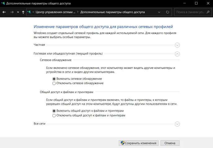 Когда рабочий компьютер настроен на сетевое обнаружение и предоставление доступа к файлам через Центр управления сетями и общим доступом (рис. 56), к этому компьютеру можно подключиться по доменной или частной сети, тем самым получив доступ к общей папке с необходимыми файлами.