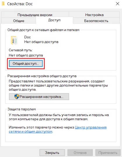В том же разделе мы можем настроить нашу панель инструментов на совместную работу, выбрав в качестве стандартной папки для инструментов сетевую папку. Чтобы настроить папку на сетевой доступ, нужно проследовать по пути Свойства папки → Доступ → Общий доступ (рис. 54).