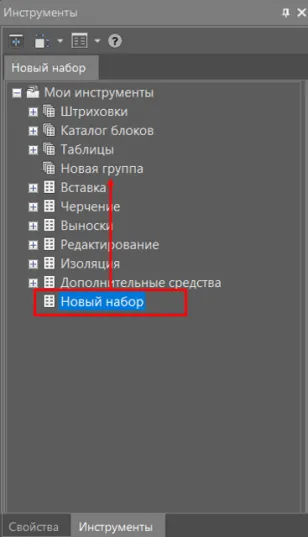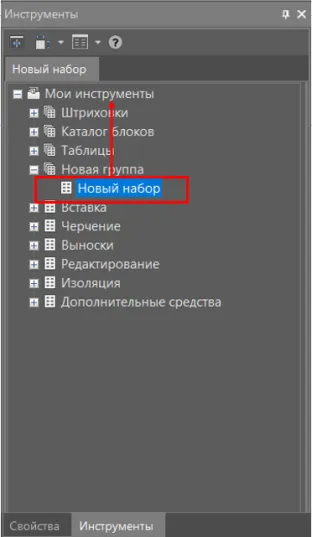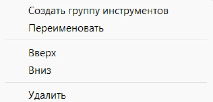 - Создать группу инструментов – создание новой вложенной группы инструментов;