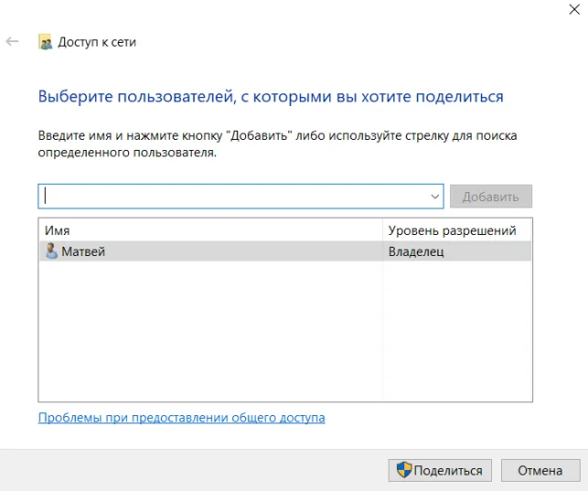 В открывшемся разделе Доступ к сети выберите пользователей, которым будет предоставлен доступ к папке (рис. 55).