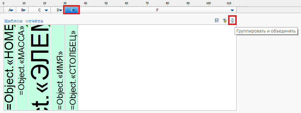 Далее произведем сортировку, так как все элементы должны быть расположены в строгом порядке. Для быстрой сортировки создадим скрытый столбец E со значением атрибута Столбец и воспользуемся функцией Группировать и объединять (рис. 12). Чтобы скрыть столбец (строку), необходимо выделить его (ее), щелкнуть ПКМ по линейке и в выпадающем меню выбрать значение Скрытый.