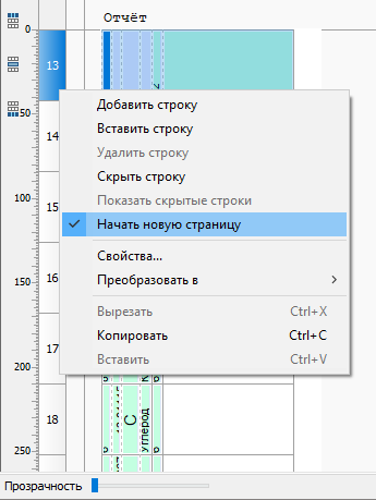 Отчет может состоять из нескольких столбцов и строк. Чтобы создать в шаблоне отчета строки и столбцы, через главное меню полного редактора выберем Строки/столбцыДобавить строку/столбец или щелкнем ПКМ по линейке и укажем Вставить строку/столбец.