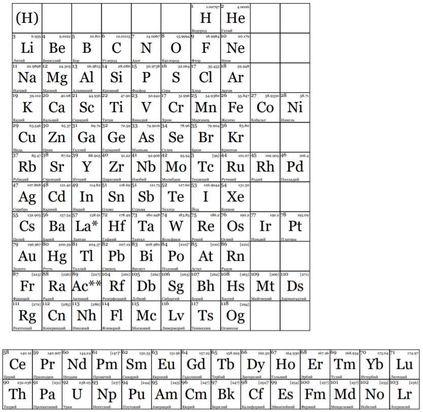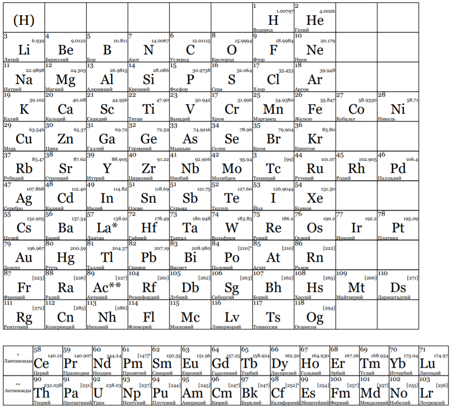 Рис. 14. Отчет по первой строке таблицы Менделеева