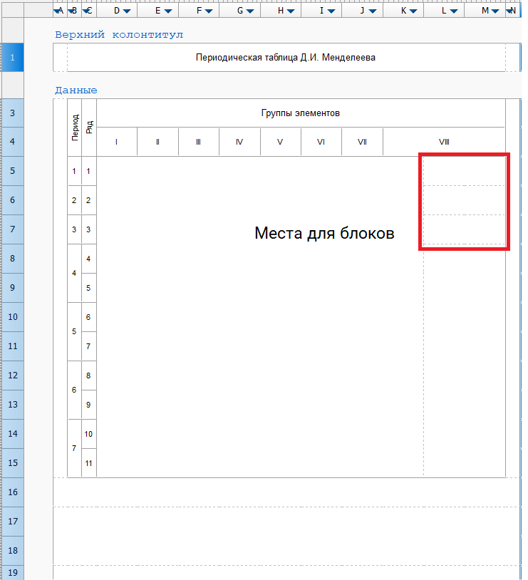 Для отдельных ячеек названий групп *Лантаноиды и **Актиноиды создадим раздел данных после каждого раздела отчета.