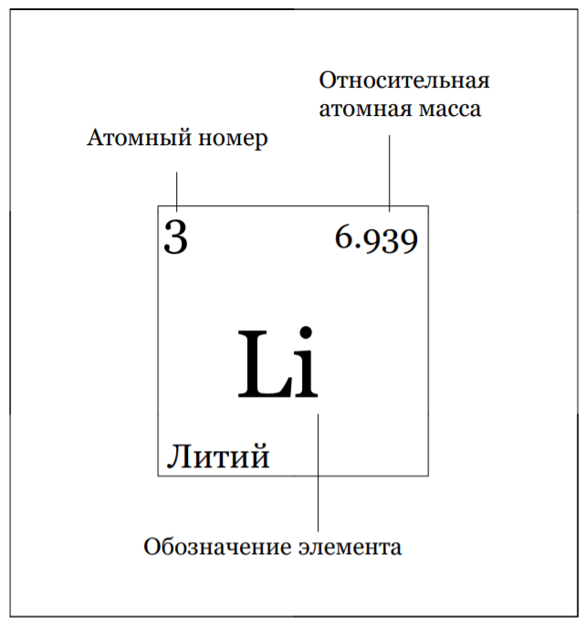 В ячейки можно вставить блоки. Создадим на примере лития блок, объясняющий расположение информации в ячейках (как в школьных таблицах).