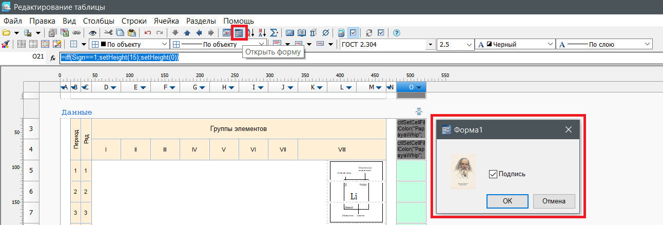 Этот инструмент удобен, когда в одной и той же таблице при одном варианте исполнения могут быть заголовки, при другом – нет. В нашем случае сделаем форму для строки с подписью автора, выполнившего таблицу в nanoCAD. Пользовательские формы также можно назвать диалогами вставки и редактирования.