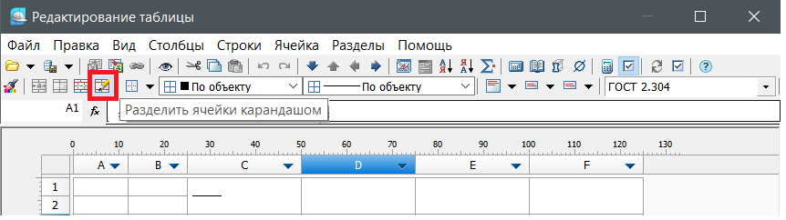 1. Функция Разделить ячейки карандашом – для быстрого деления ячеек.
