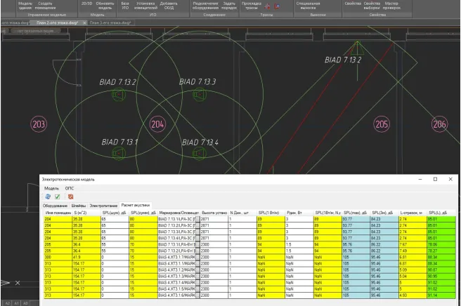 При построении модели производятся инженерные расчеты по российским нормам, а также внутренний анализ и проверка проекта благодаря встроенным алгоритмам контроля.