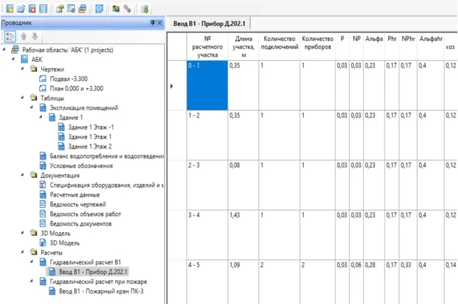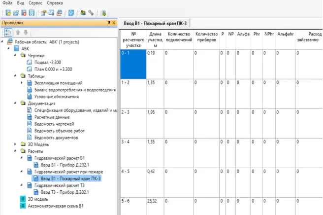 Соответствие требованиям СНиП 2.04.01-85*, СП 30.13330.2012, СП 30.13330.16 и СП 30.13330.2020 как противопожарного водопровода, так и хозяйственно-питьевого с подключенными ПК. Расход воды на пожарные краны определяется по таблице СП 10.13130.2020. Программа самостоятельно подбирает диаметр и арматуру для противопожарного водопровода. Также формируется гидравлический отчет