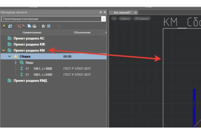 Все создаваемые объекты железобетона и металлоконструкций имеют двустороннюю связь между чертежом и Менеджером проекта (такая связь будет установлена и для всех новых или копируемых объектов)