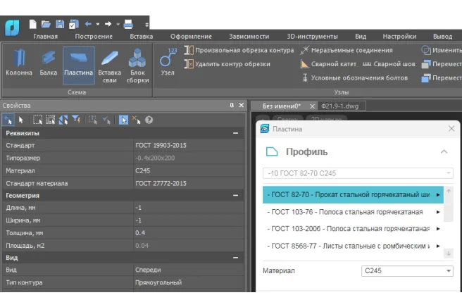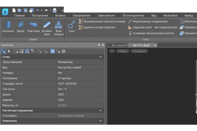 Программа оснащена готовыми элементами для проектирования металлических конструкций: колонны, балки, связи, пластины и т.д.