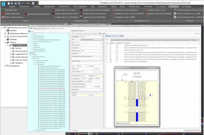 Компонент nanoCAD GeoSeries для создания, хранения и обработки геологических данных по линейным и площадным объектам изысканий