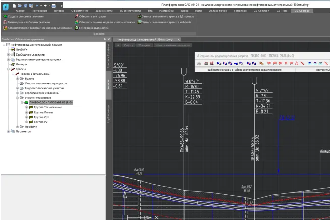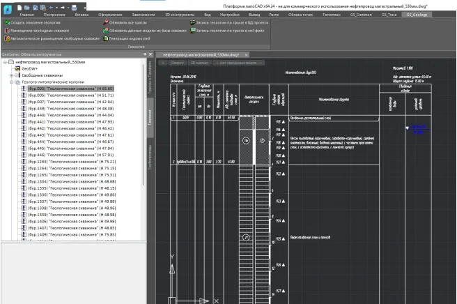 Автоматическое формирование инженерно-геологических разрезов на продольных профилях по данным геологических скважин