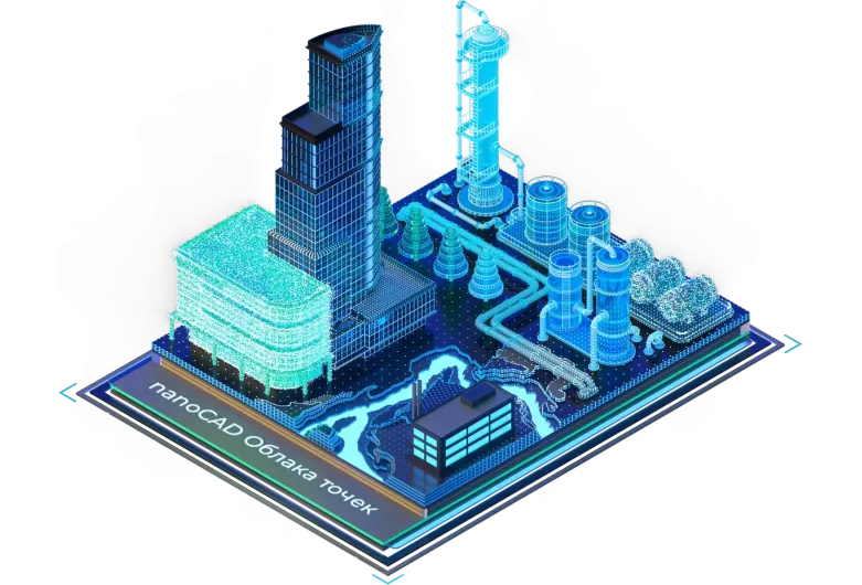 nanoCAD Облака точек работает как вертикальное приложение САПР-платформы nanoCAD, что позволяет создать единую инженерную экосистему для обработки данных 3D-сканирования и их дальнейшего использования в других программных продуктах