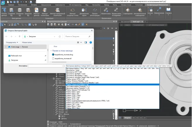 Модели для оценки и сравнения могут быть загружены из обширного перечня форматов представления CAD-данных. Наряду с базовым для Платформы nanoCAD форматом *.dwg этот набор включает в себя множество поддерживаемых Платформой векторных форматов представления пространственных данных.