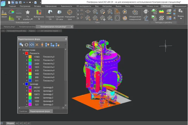 Команда, осуществляющая поиск элементарных форм (плоскость, сфера, цилиндр, конус, тор) в облаке точек