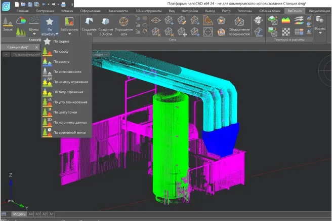 Автоматическое построение множественных сечений облаков с заданным шагом, их последующая векторизация и создание растровых изображений