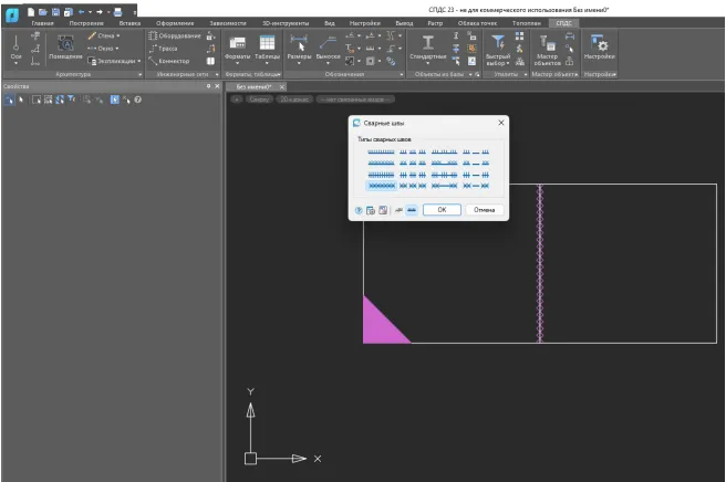 Инструменты отрисовки сварных швов, простановки сварного катета и обозначения неразъемного соединения, необходимые при проектировании металлических конструкций