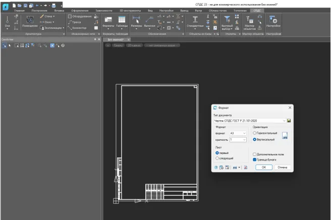 Для удобства пользователей реализован инструмент вставки листов с кратностью стандартных форматов А0, А1, А2, А3 и А4 – как в вертикальной, так и в горизонтальной ориентации, с различными штампами